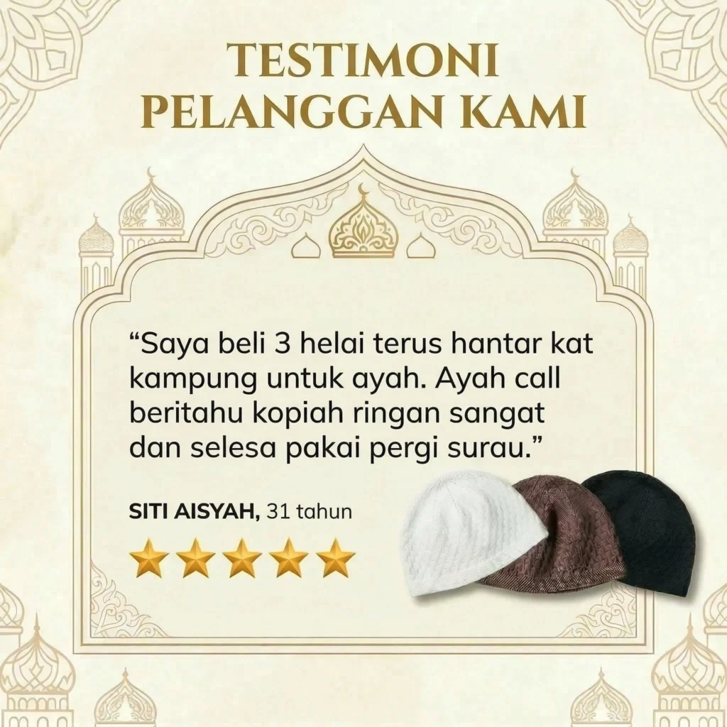 AMRU Kopiah Premium Dengan Bahan Berkualiti Serta Telus Udara Untuk Kepala Lebih Sejuk!